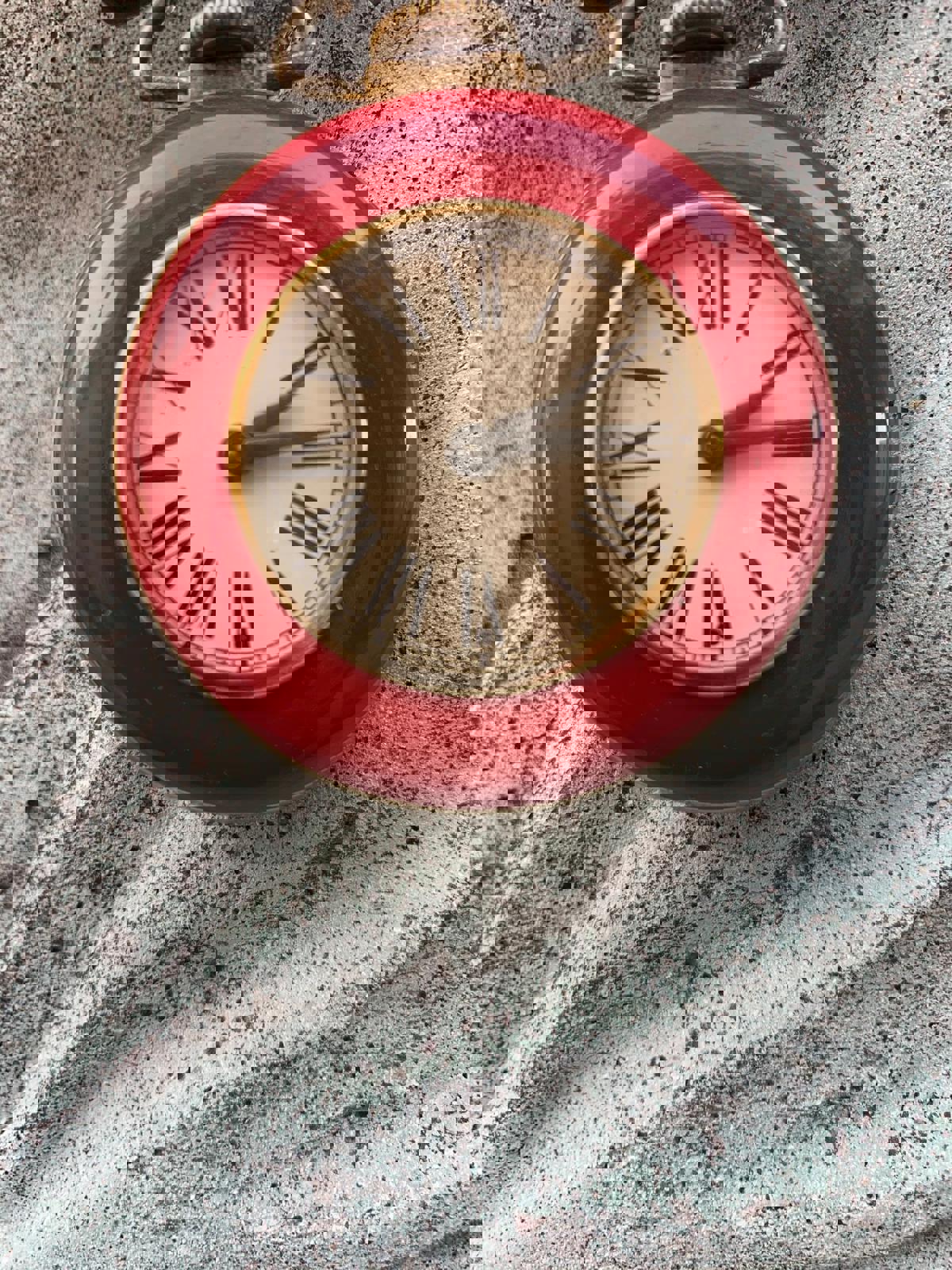 The watch has discolouration on the gold-tone part The red enamel or paint had a few scratches on the back that are covered with nail polish, please look at the photos & please convo me with any questions, the watch is manual wind up & keeps time & in overall excellent condition for a piece this age.