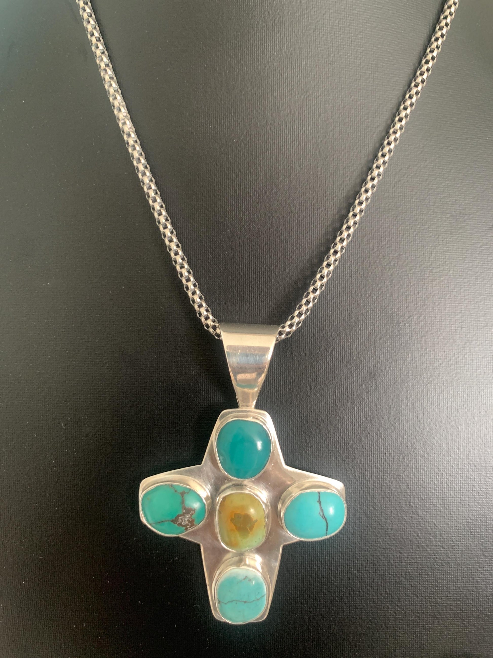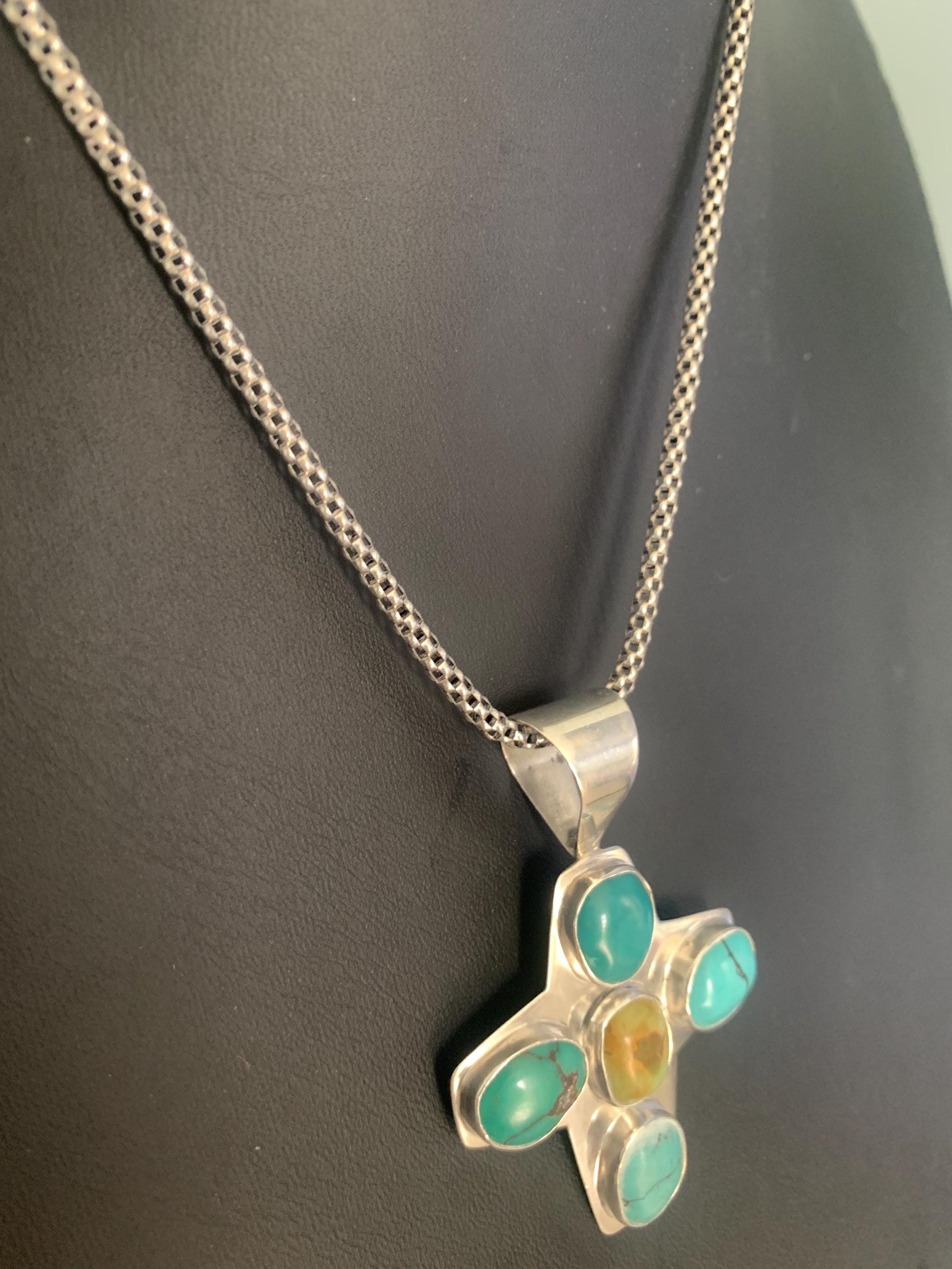 Vintage Sterling Silver. Chunky Turquoise Cross By DRT. Designer Milor Sterling Chain.Vintage. OOAK.